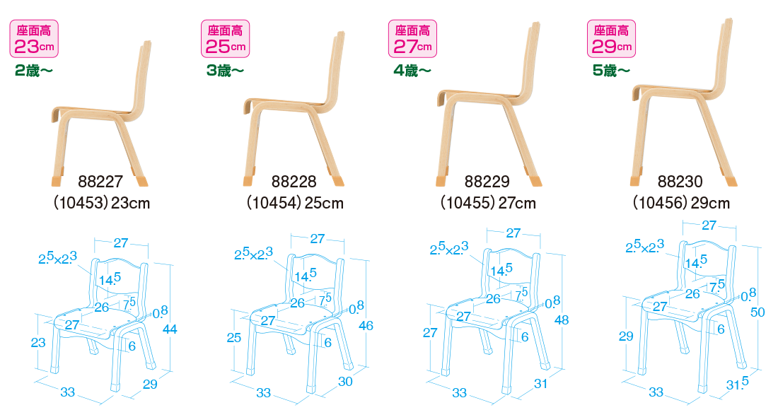 ●天然木のいすは、使い込むほどに木目、木肌、色合いが微妙に変化します。