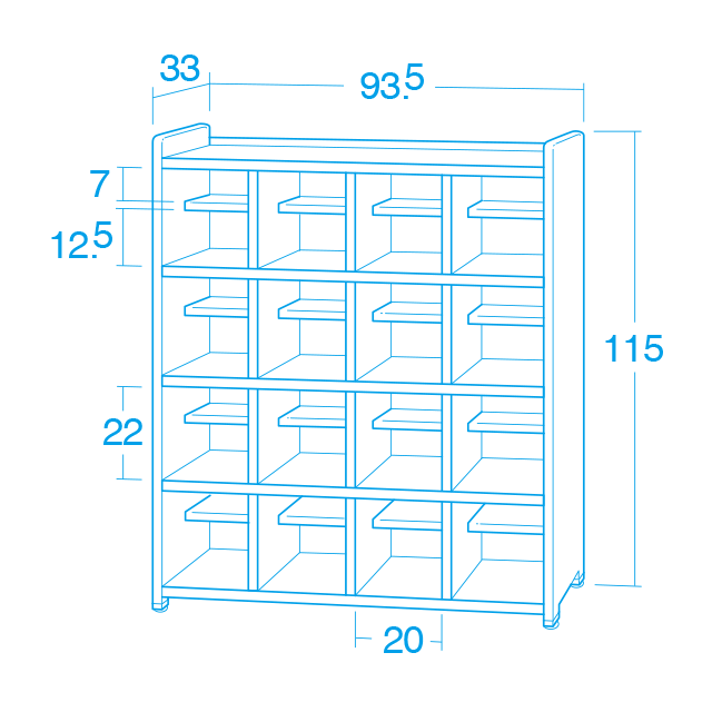 テラスシューズロッカー・木調タイプ16人用図面